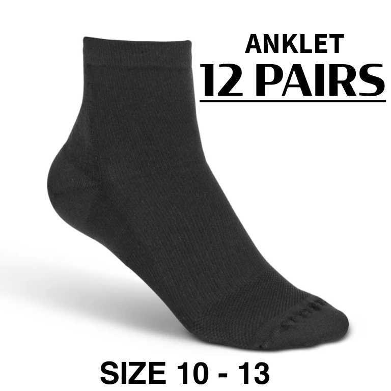 S2876 Skyland ANKLET SOCKS Size 10-13 (BLACK) 12-pack