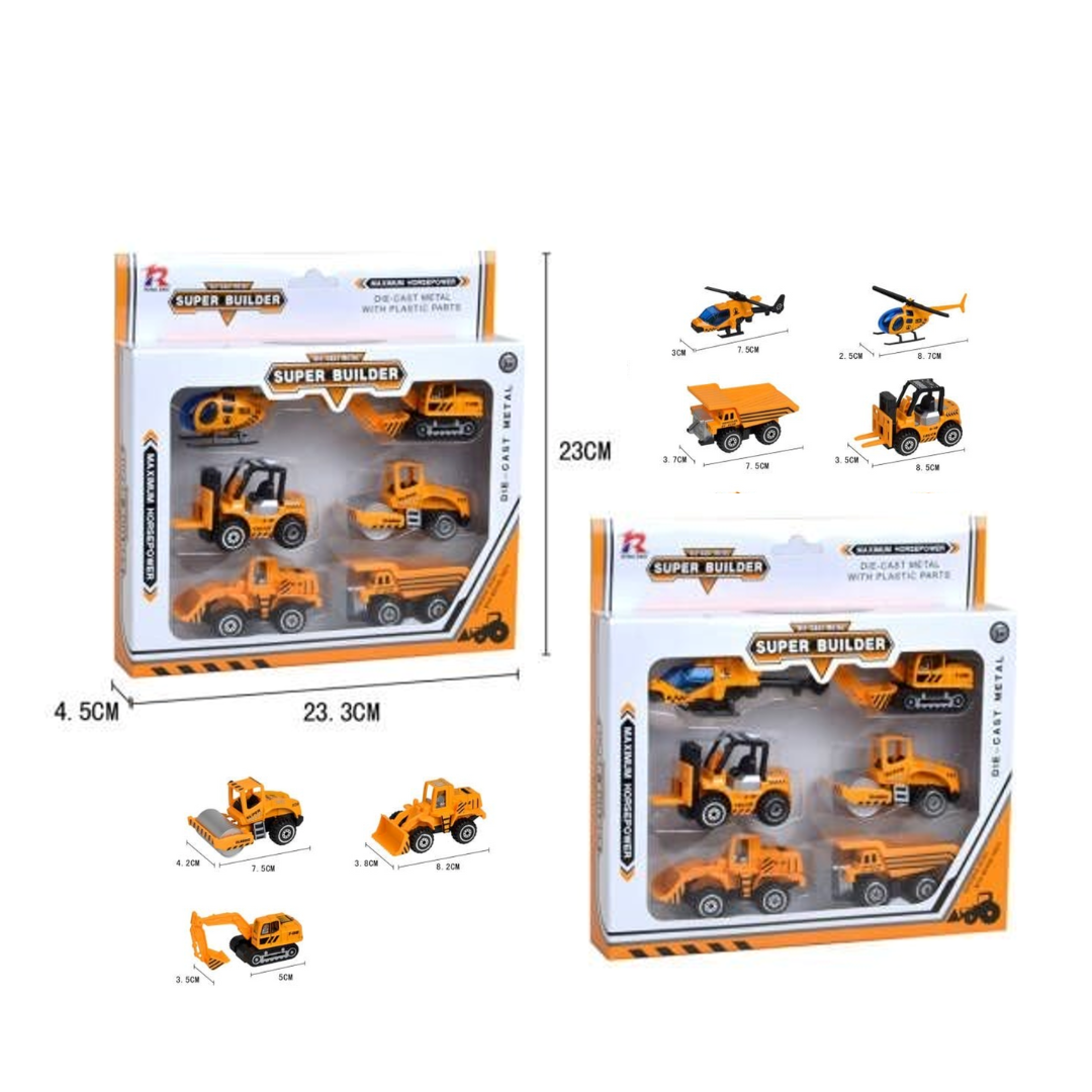 S2798 Die-Cast Metal Super Builder Construction Cars (JM522-36) 6-in-a-pack