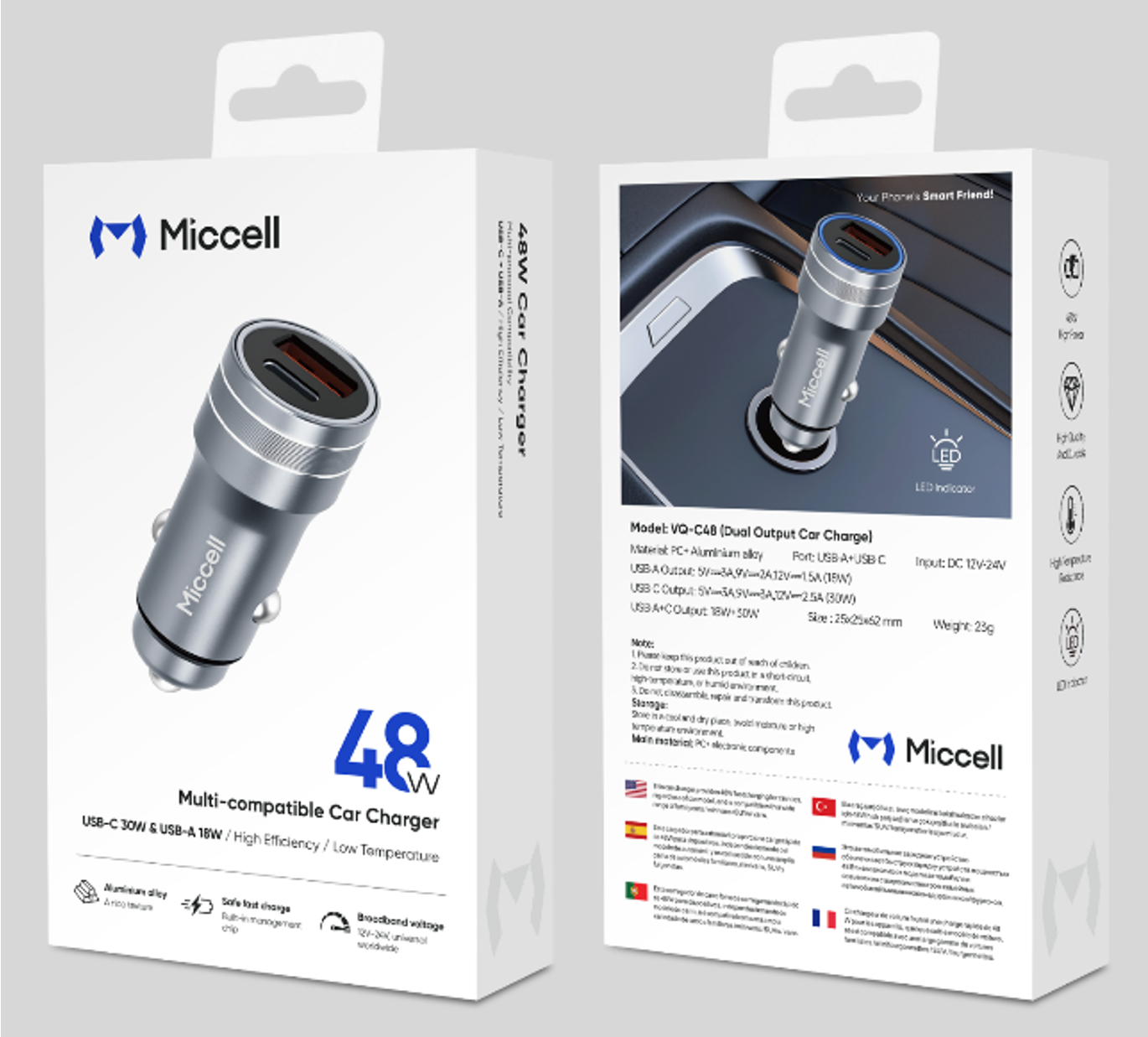 S2990 Miccell 48W Dual Port Ultra-Lightweight Fast Car Charger (VQ-C48)