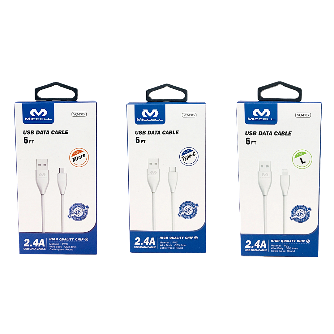 S1020 Miccell USB Data Cable 6ft (VQ-D03) Box pack