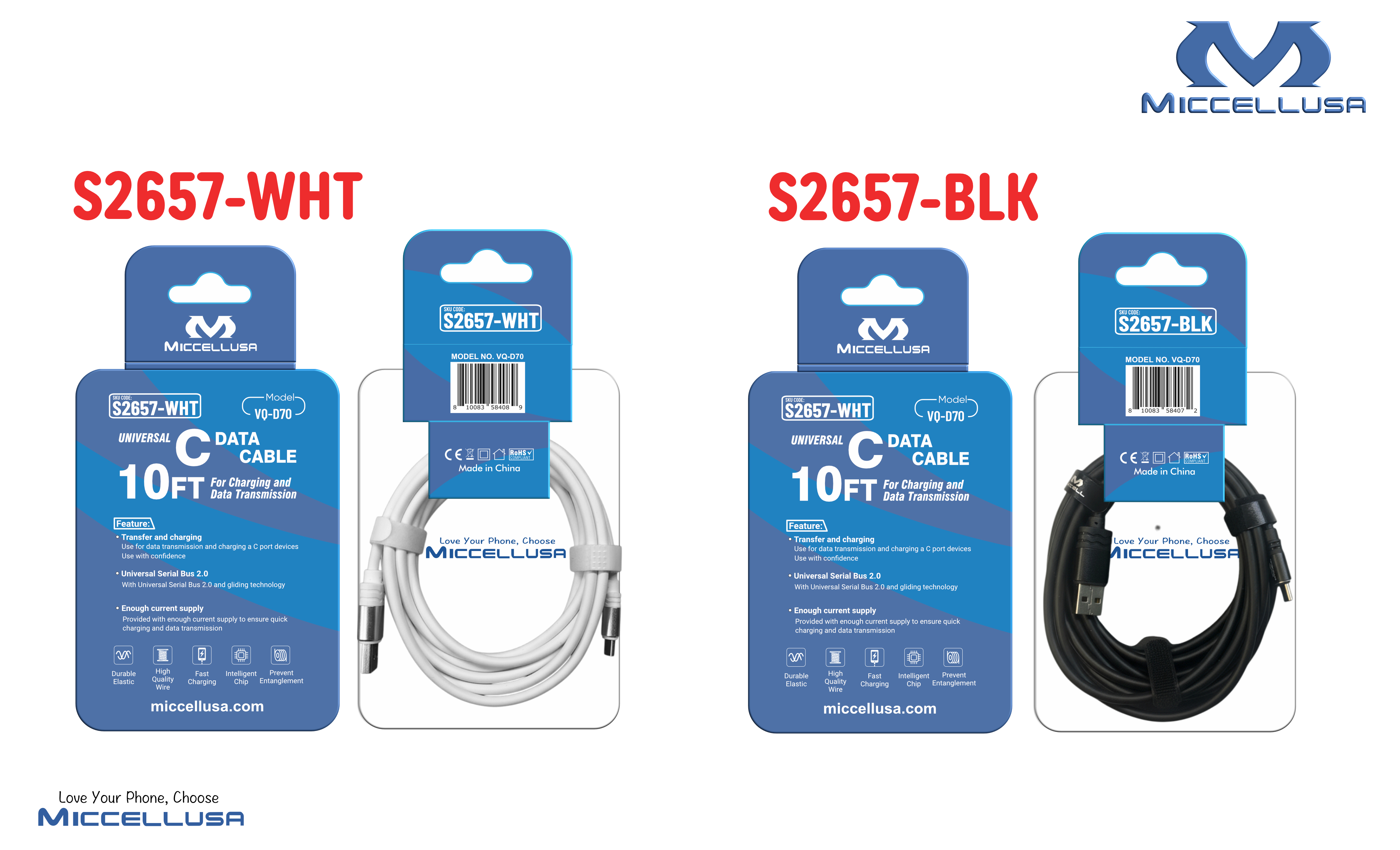 S2657 Miccell Universal-C Data Cable 10FT (VQ-D70) Box Pack